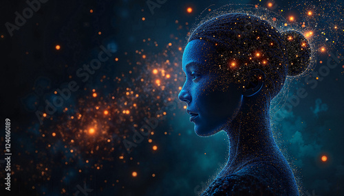 Woman Surrounded by Cosmic Constellation Representing Spiritual Connection and Inner Universe