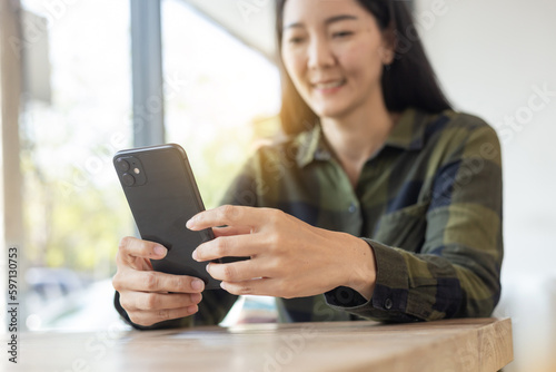 woman using cell phone hand holding mobile texting message contact us.chatting,search internet information.technology device communication connecting