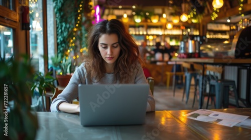 Woman using laptop in cafe