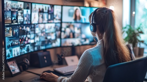 Woman Video Editor Working on Multiple Screens