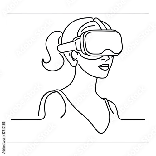 woman wearing a VR headset. line art vector illustration