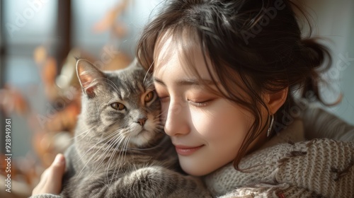 Woman with cat, portrait