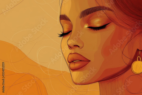 Woman with long hair and earrings looking out of a window into a rainy cityscape, holding a mug with steam rising.