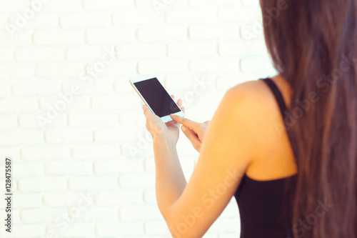 Woman with modern mobile phone in hands