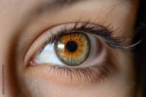 Woman's amazing hazel eye is staring intensely, showing reflection