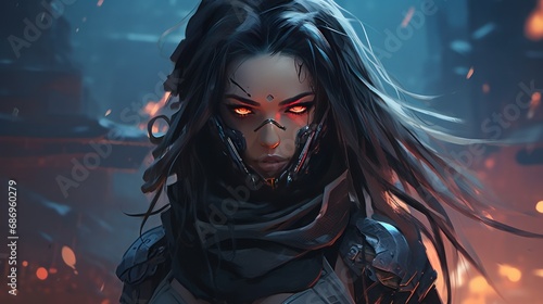 Women Cyberpunk ninja Cyborg Character background wallpaper ai generated image