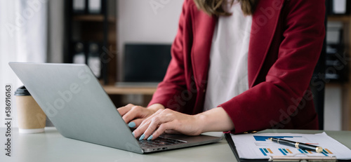 Women use laptop computers for laptop payments, online shopping, omni channels, sitting at desks.