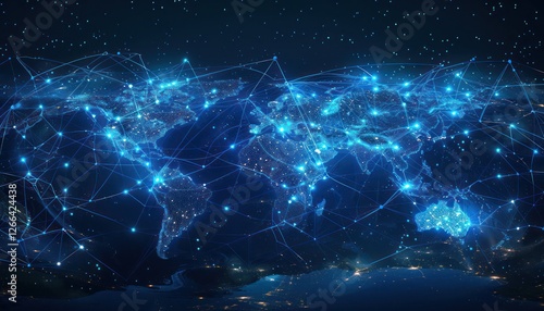 Wonderful futuristic international telecommunication network, concept about global information, background with abstract dynamic gradient line flows connecting cityspace around the world