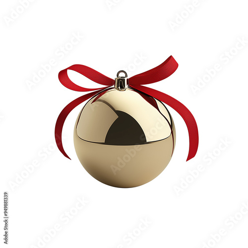 wonderful golden shining smooth surface jingle bell with a red ribbon on a white or transparent background