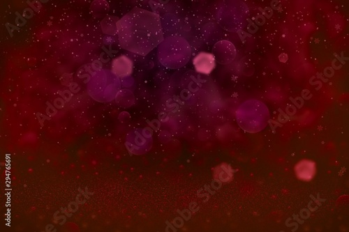wonderful sparkling glitter lights defocused bokeh abstract background and falling snow flakes fly, holiday mockup texture with blank space for your content