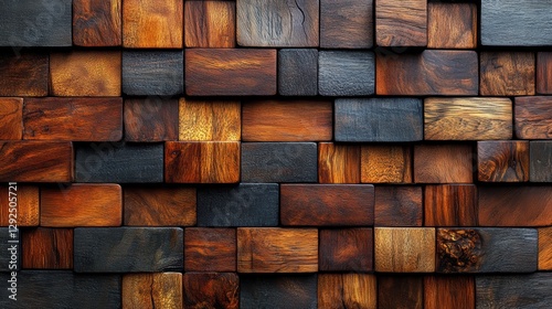 Wood Block Wall with Varying Tones for Interior Design Backdrop