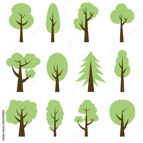 Wood for every taste. Abstract trees. Green trees. A collection of tree illustrations.