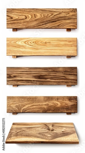 Wood shelves table top collection isolated on white background. Clipping path include in this image. Copy space for your display or montage product design.
