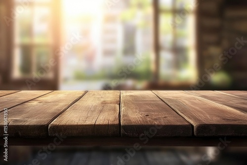 Wood table on blur kitchen room background. For montage product display or design key visual layout.
