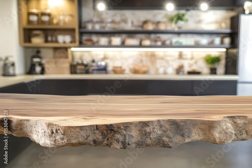 Wood table on blur kitchen room background. For montage product display or design key visual layout.