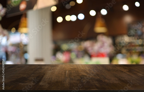Wood table top in front of abstract blurred background. Empty wooden table space for text marketing promotion. blank wood table surface copy space