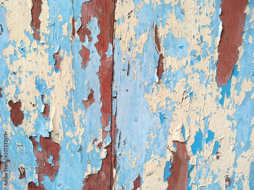 Wood walls with peeling paint. Wood wall texture can be used as a wall frame and wall background. Dirty and Old wooden wall texture background.