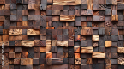 wooden 3d tiles wall texture Wood background. Generative AI.