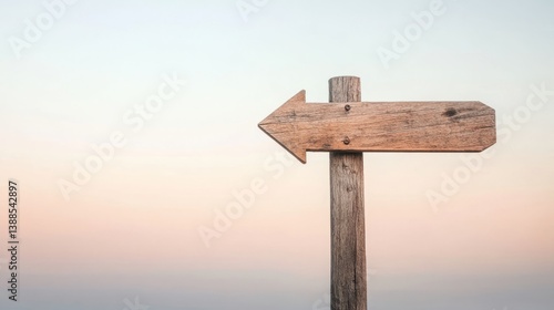 Wooden Arrow Signpost Against Gradient Sky, Symbolizing Direction and Simplicity