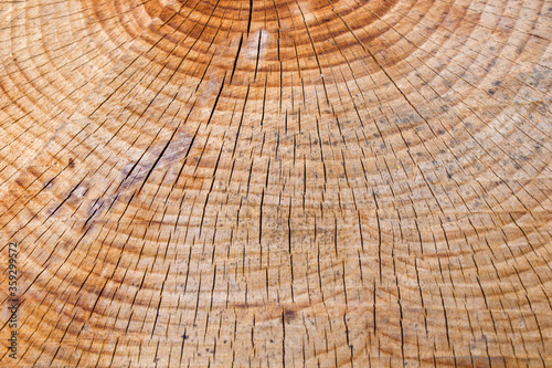 Wooden background, Cut tree pattern. Texture of cut and dry tree. Tree age rings. Cracks on the wooden background.