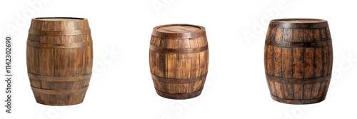 Wooden barrels in various sizes and finishes, perfect for rustic decor