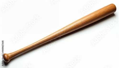 Wooden baseball bat isolated on white background. Baseball bat tool made from wood. Sports equipment for baseball game. Object on white. Product design, sport advertising concept.