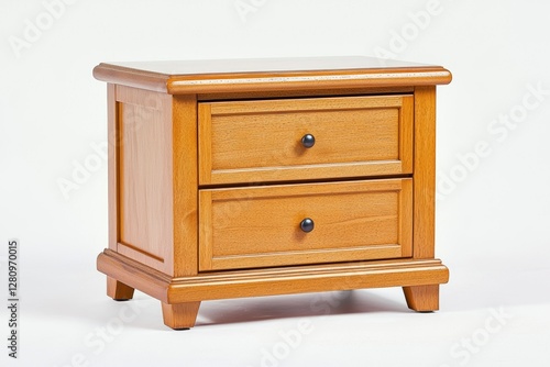 Wooden Bedside Table With Two Drawers in Light Oak Finish Placed on a White Background. Generative AI