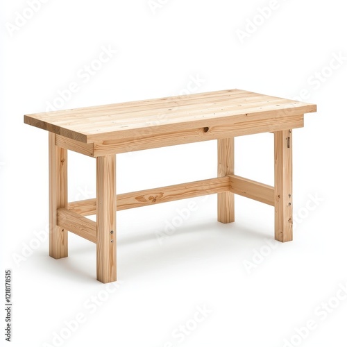 Wooden bench and carpenters workbench isolated on a clean white background for design and woodworking concepts