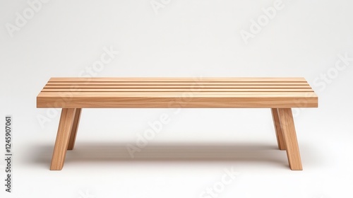 Wooden Bench with Angled Legs and Slatted Seat Design for Interiors