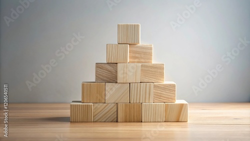 Wooden blocks arranged in a pyramid shape on a table