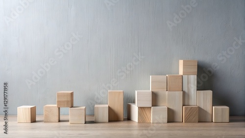 Wooden blocks arranged in an ascending pattern against a textured backdrop
