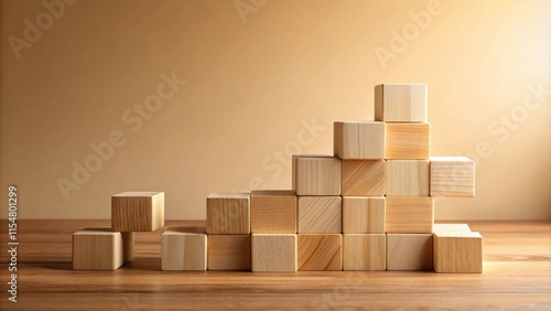 Wooden blocks arranged in an ascending pattern on a table against a neutral background, symbolizing growth and development