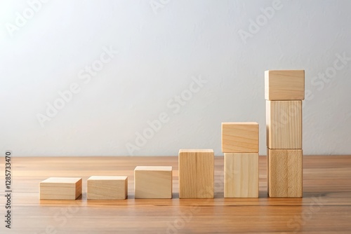 Wooden Blocks Arranged in Ascending Order on a Tabletop, Representing Growth and Progress