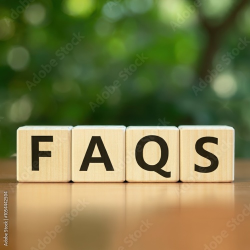 Wooden blocks spelling "FAQS" , representing frequently asked questions, customer support, information, help, assistance, guidance, and knowledge sharing.