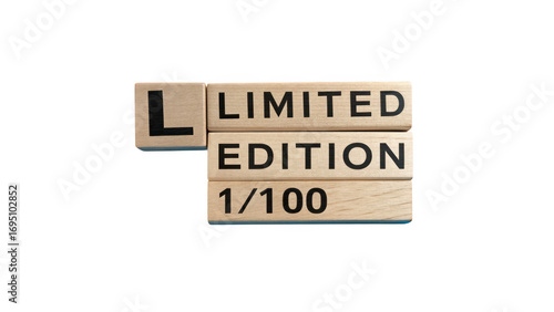 Wooden blocks spelling limited edition 1100, isolated on transparent background