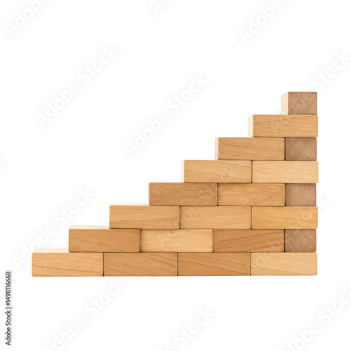 Wooden blocks stacked in a staircase formation against background on transparent background