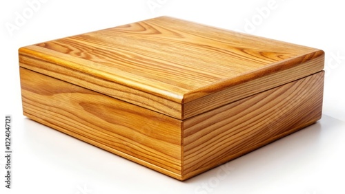 Wooden Box, Rectangular Box, Natural Wood Box, Isolated Wooden Crate, White Background, Lateral View, Empty Wooden Container, Rustic Wooden Box, Side View Wooden Box