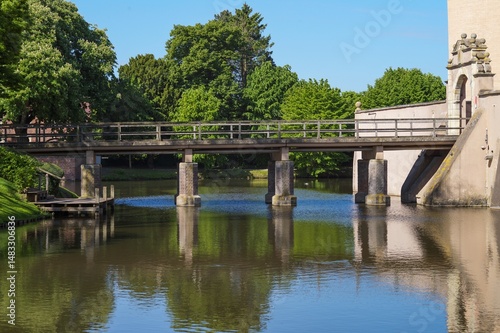 Wooden bridge leading to a medieval castle in the netherlands on a sunny day