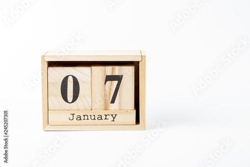 Wooden calendar January 07 on a white background