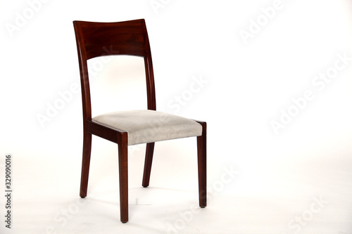 Wooden chair with cushion shot against white background