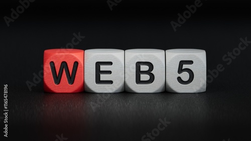 wooden cube block with web 5 business word.close up of wooden elements,Business Concept.3D rendering on black background.