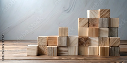 Wooden Cubes Arranged in Ascending Order on a Wooden Surface