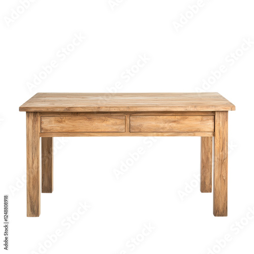 Wooden desk with two drawers on a white isolated background.