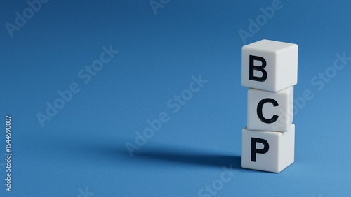 wooden elements with bcp text. Financial, marketing.close up of wooden elements,Business Concept.3D rendering on blue background.