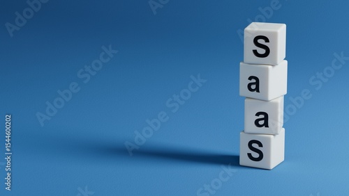 wooden elements with SAAS business word.close up of wooden elements,Business Concept.3D rendering on blue background.