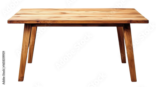 Wooden oak table with legs isolated on transparent background.
