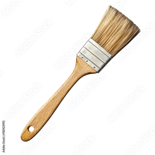 wooden paintbrush with wood handle and soft bristles isolated on white transparent background