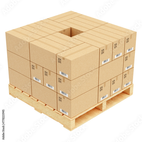 Wooden Pallet with Kraft Boxes Mockup 3D Render on Transparent Background