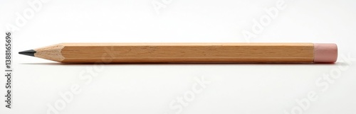 Wooden pencil isolated on white background. School stationery tool with graphite tip and pink eraser. Writing instrument for drawing sketching. Classic office supply education concept.