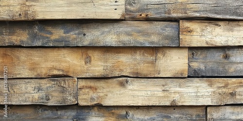 Wooden planks arranged in a textured pattern showcasing natural variations in grain and color